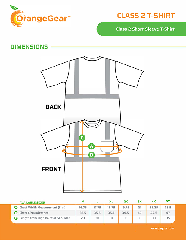 OrangeGear® Class 2 Short Sleeve High Visibility Moisture Wicking Safety T-Shirt: Hi Viz Orange XL