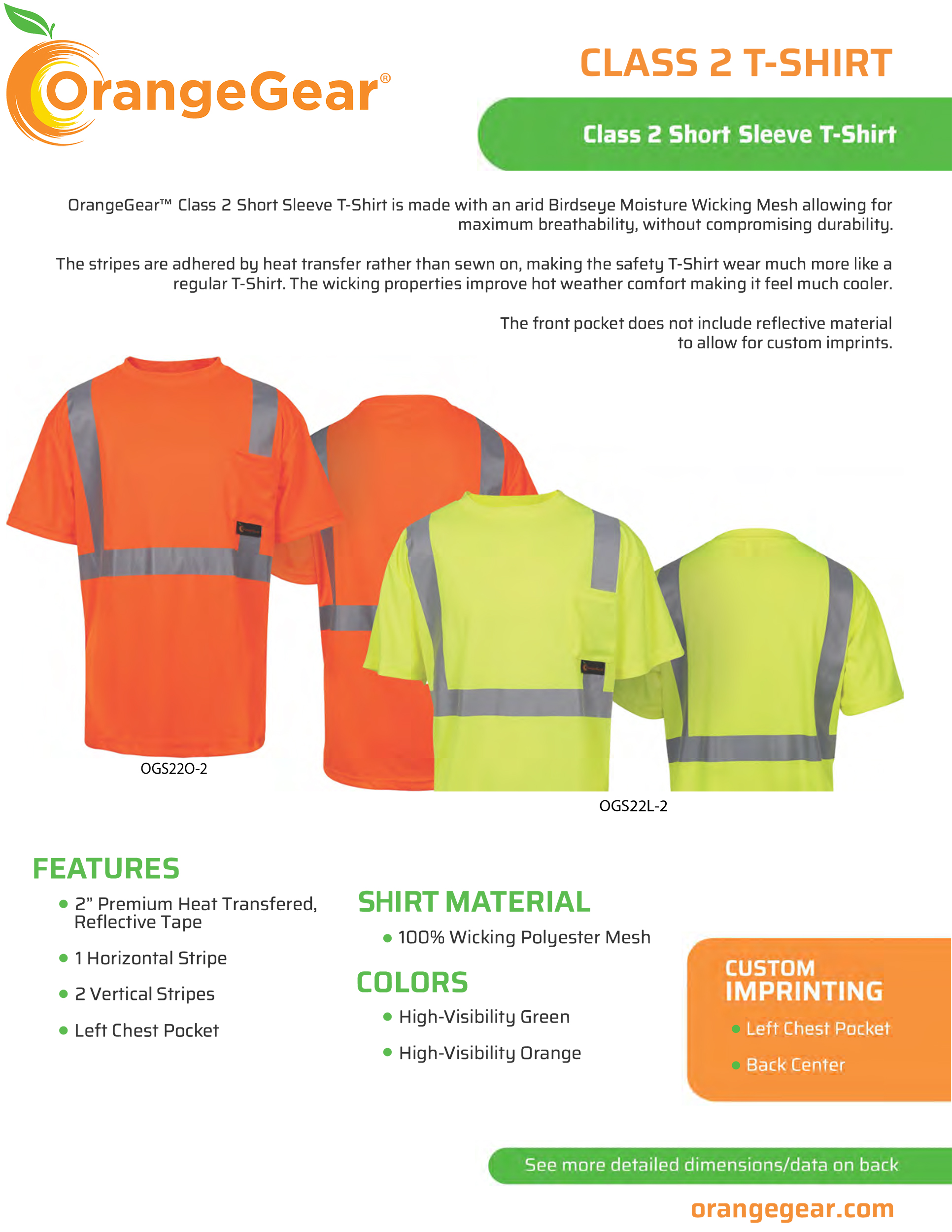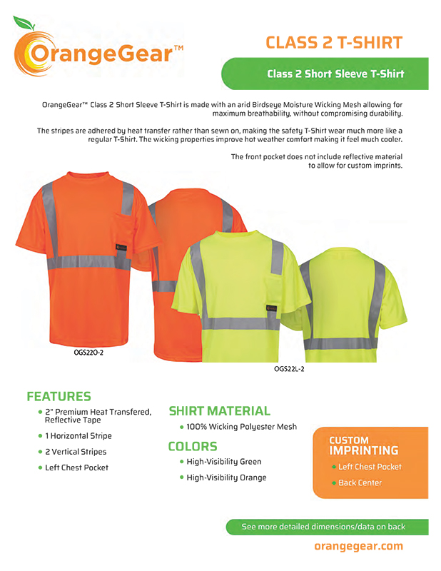 OrangeGear® Class 2 Short Sleeve High Visibility Moisture Wicking Safety T-Shirt: Hi Viz Orange L