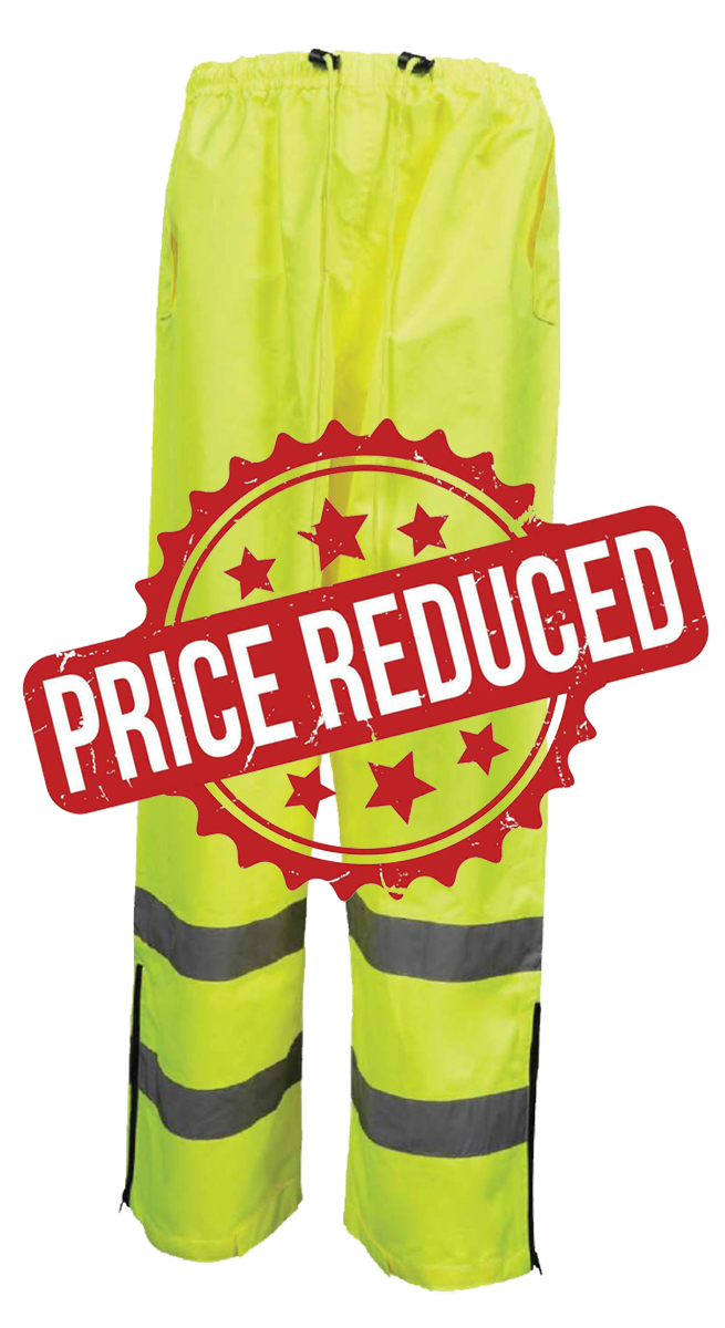 OrangeGear® High Visibility Heavy Duty Lime Class E Waterproof Rain Pants: X-Large