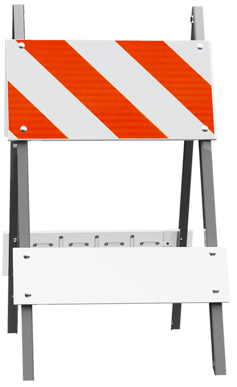 Type I Plywood or Plastic Panel Steel Leg Barricade: Plastic Engineering Grade 12" x 24"