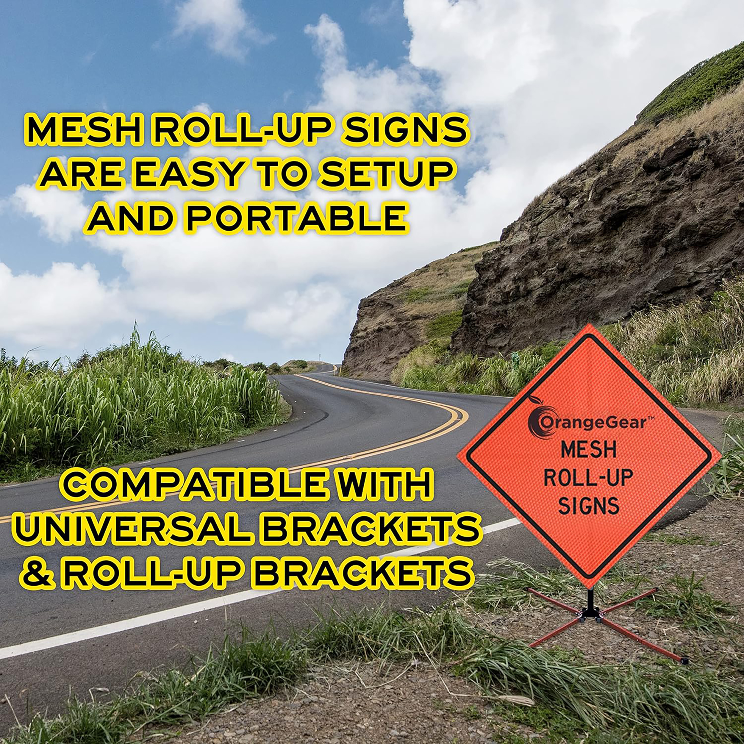 48" x 48" MUTCD Compliant Safety Mesh Roll Up Sign: ROAD WORK AHEAD