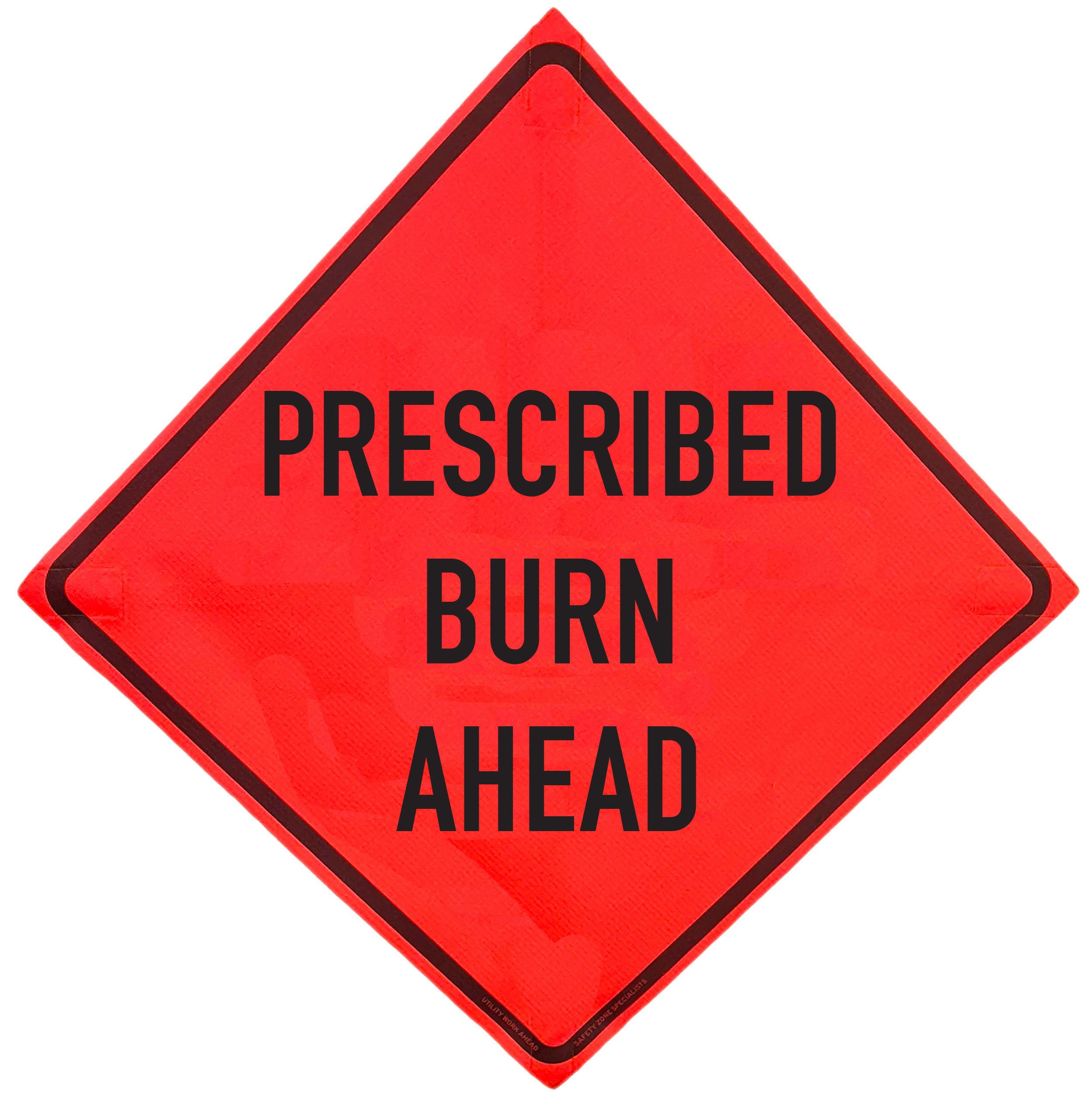 48" x 48" MUTCD Compliant Safety Mesh Roll Up Sign: PRESCRIBED BURN AHEAD