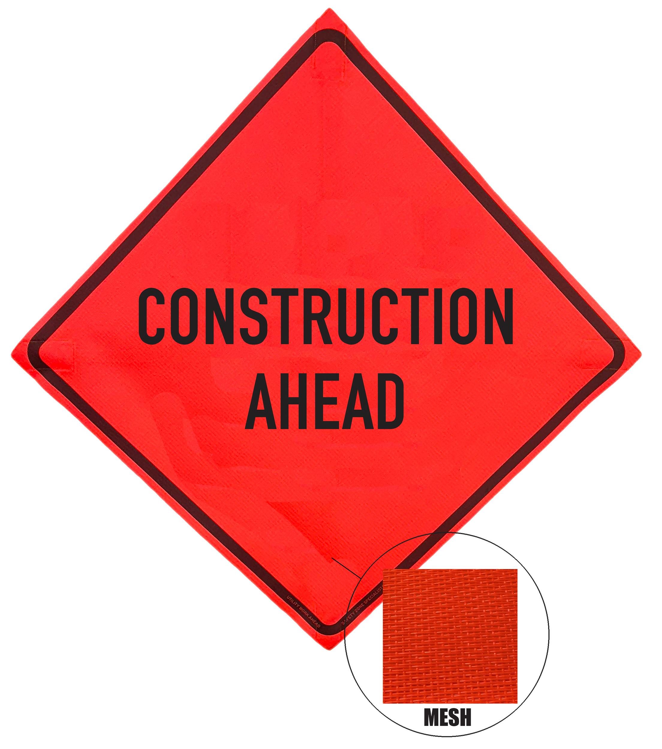 - Mesh signs made of 15 oz fluorescent safety orange woven mesh