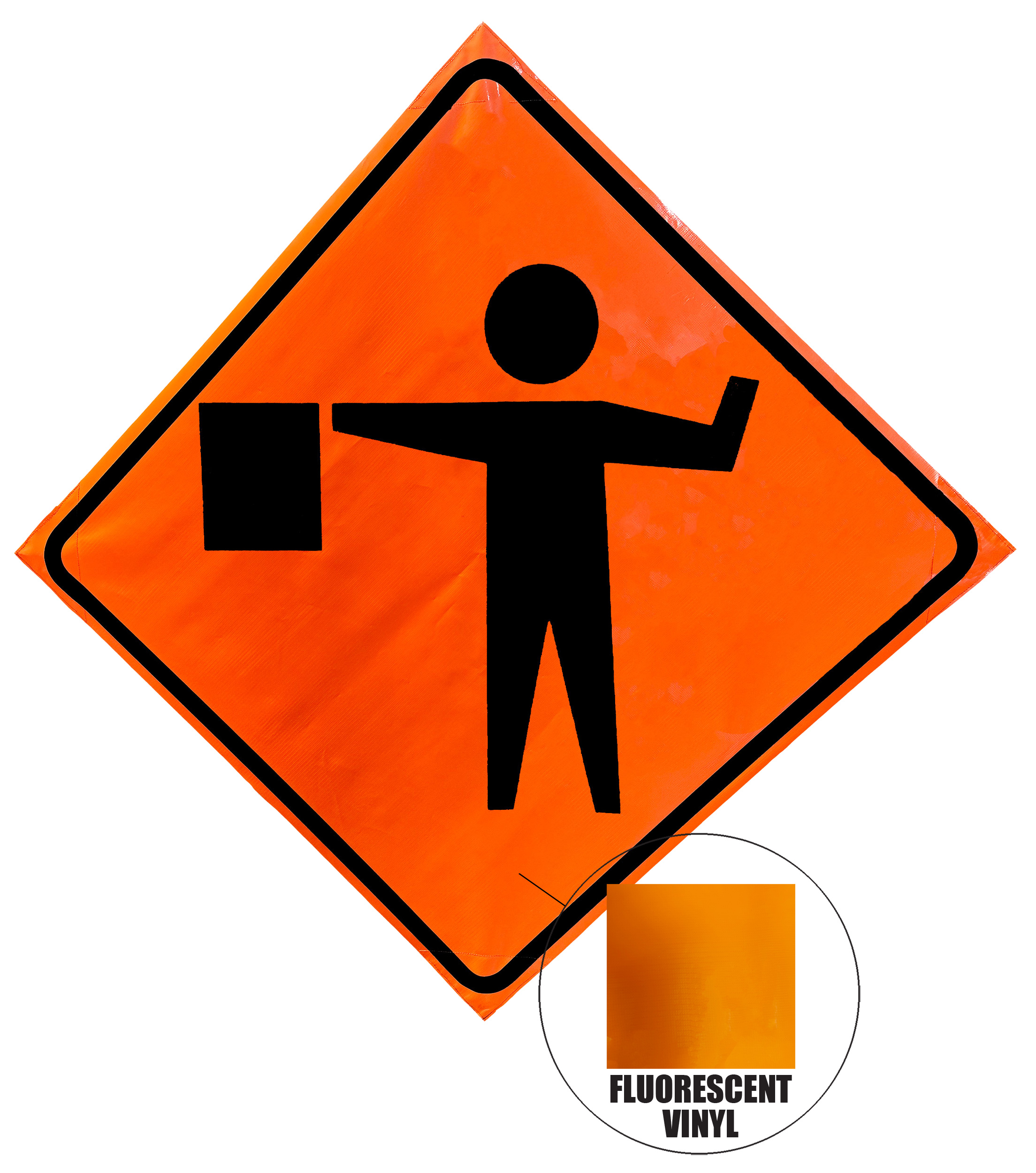 - Non-reflective signs made of a highly visible fluorescent orange vinyl