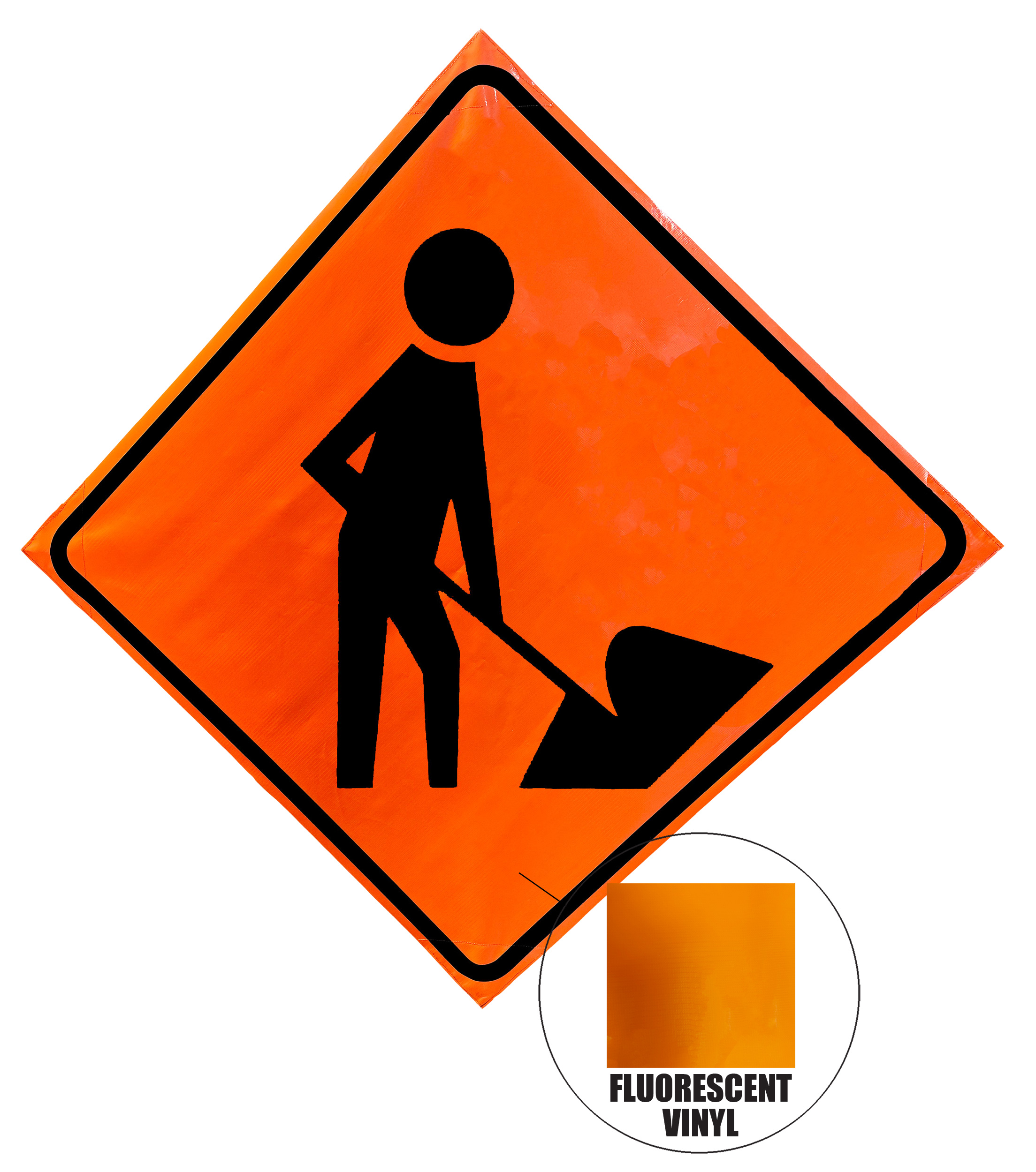 - Non-reflective signs made of a highly visible fluorescent orange vinyl
