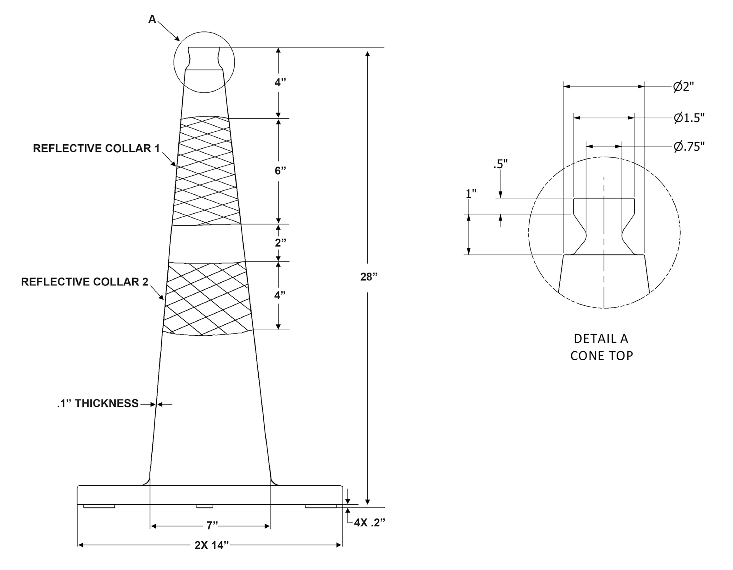 - Cone material: fluorescent orange injection-molded PVC, 100% recyclable