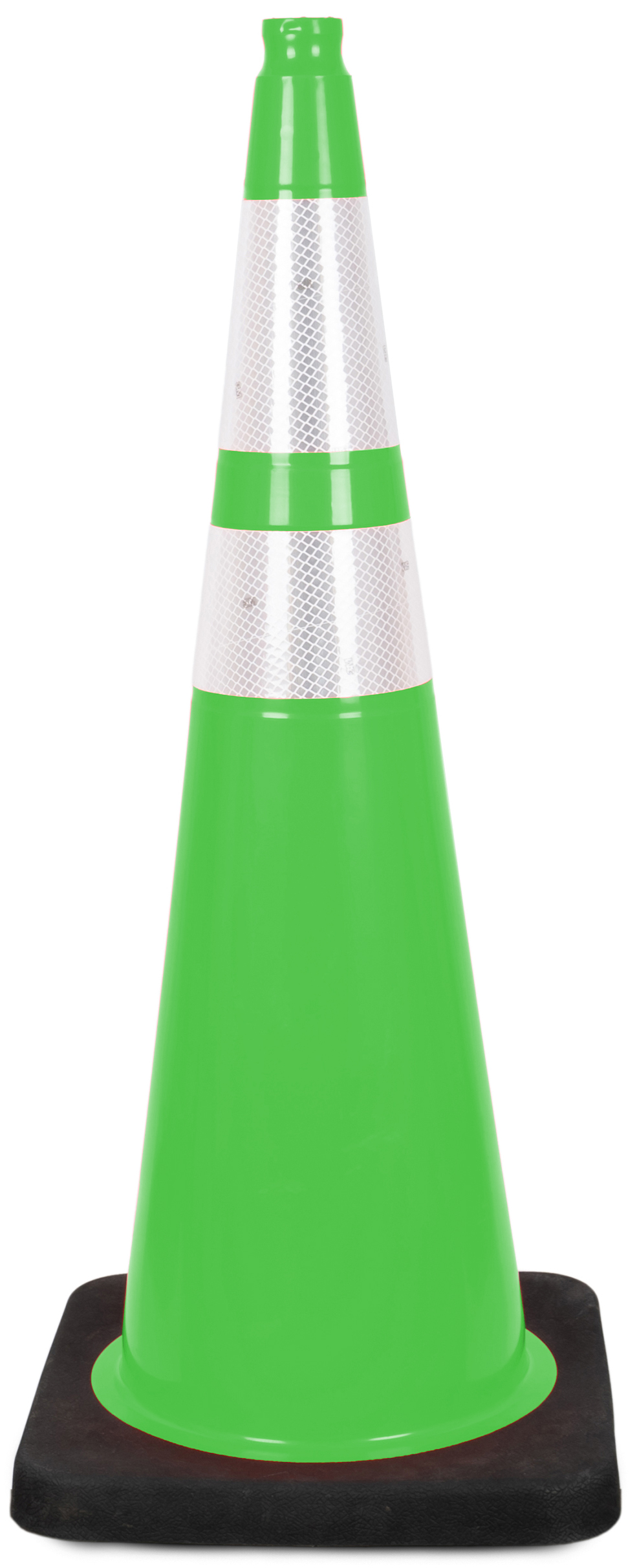 - Cone material: fluorescent lime or orange injection-molded PVC, 100% recyclable